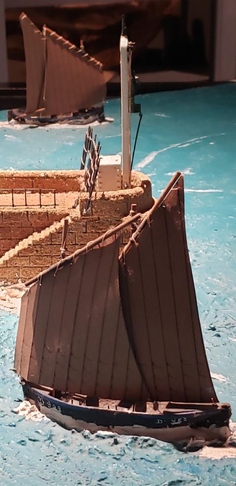 Die Schaluppe ist 10 Meter lang, einfach und effizient, hat zwei Segel und für das Fischen entlang der Küste für maximal ein paar Tage geeignet. Die langen und schweren Ruder halten das Boot beim Fischen im Wind und bewegen es vorwärts, wenn der Wind nachlässt. Die Besatzung besteht aus dem Kapitän, 3 Matrosen und dem etwa 12-jährigen Lehrling. Um 1900 stellten die Werften von Douarnenez, hier an der Port Rhu, 140 Boote pro Jahr her, die alle identisch waren.
