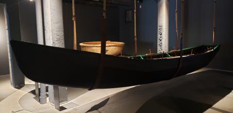 The Curragh, traditional vessel of the Irish West coast, resembles the Coracles, but is designed for the high seas. A light skeleton was originally covered by skin and nowadays by tarred canvas. Depending on its size it can carry 2 or 3 people. It is steered with oars, by two or three rowers. Its length varies between 4 to 7 m, its width between 1 and 1.50 m. It can carry up to 2 tons! The traditional construction has been passed down from father to son for centuries. The model you are seeing was built in 1982 in Moorstown.